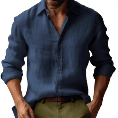 European And American Solid Color Men's Shirt Long Sleeve